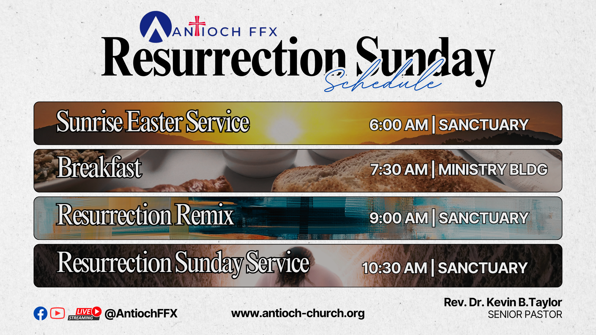 Join us at Antioch Baptist Church (Antioch FFX) as we celebrate the resurrection of Jesus Christ — the victory that changed everything. Resurrection Sunday is a powerful day of worship, fellowship, and joy for our entire six-generational church family.