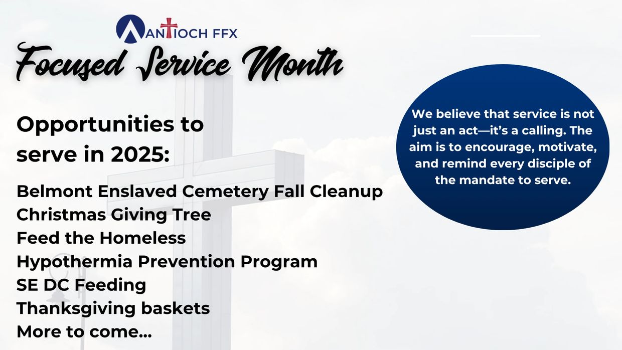 In order to maximize this month of service, we invite you to explore the opportunities below and find a place where your gifts, time, and passion can make a difference. Let’s serve faithfully, joyfully, and intentionally—because serving others is how we show the love of Christ in action.