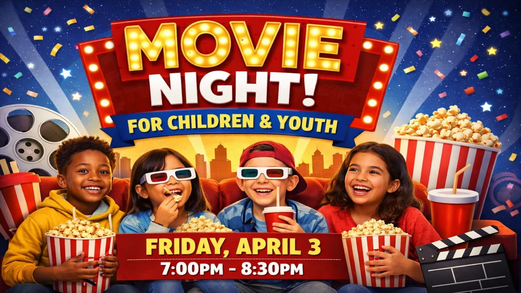 Bring the kids and join us for a fun-filled Movie Night! Enjoy an evening of entertainment, snacks, and fellowship in a safe and welcoming environment designed just for children and youth.