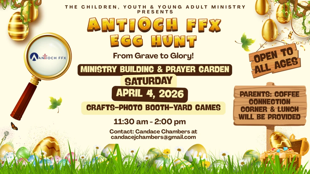 Celebrate the joy of Easter at our Antioch FFX Egg Hunt! Enjoy a day of family fun with crafts, games, a photo booth, and plenty of eggs for all ages—plus a special space for parents to relax and connect.