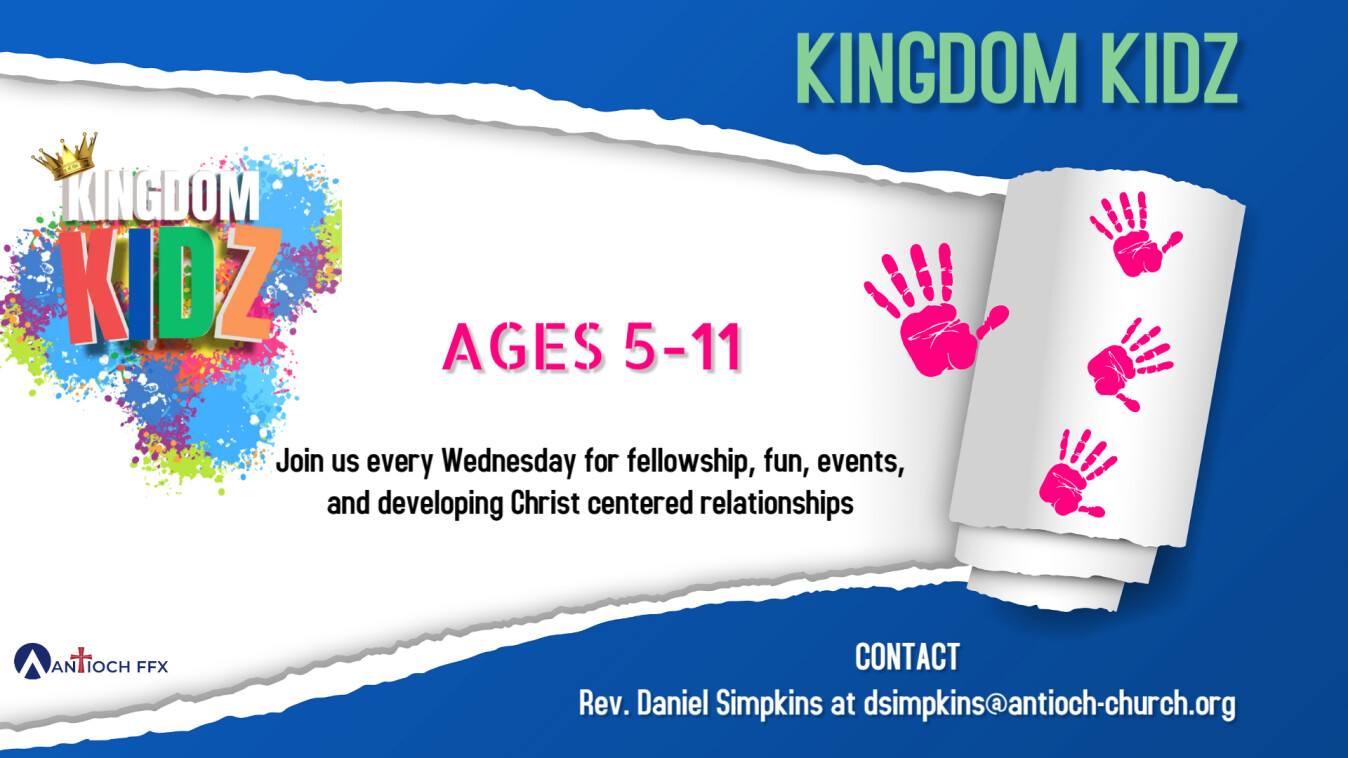 Kingdom Kidz reaches kids for Christ through fun, Scripture-rich experiences that lead them to know, love, and serve Him. We look forward to partnering with you as you help your child discover God's purpose for their life and hope for the future. Contact Rev. Daniel Simpkins.