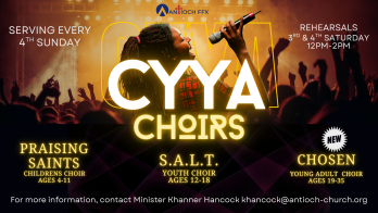 The purpose of the Music and Arts Ministry is to support Antioch worship services and programs via the ministry of music (flow and atmosphere). We are participants in the Great Commission by intentionally spreading the gospel through music to reach others for Christ.